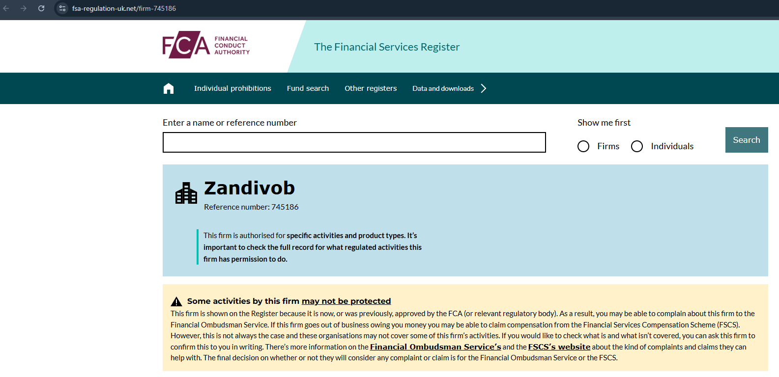 Линк ведет якобы на сайты надзорных органов, но мы выявили потенциальные признаки развода. Например, в случае с FCA ссылка перенаправляет пользователя на страницу fsa-regulation-uk net.