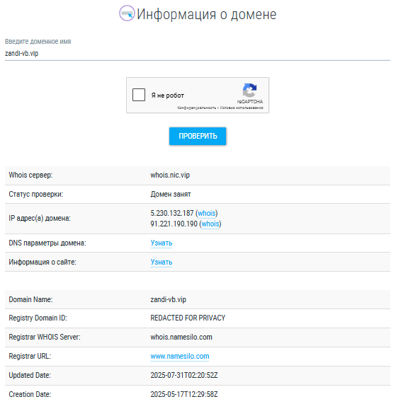 Адрес в зоне .pro не поддерживается WHOIS-сервисами, второй портал зарегистрирован в июне 2025 года.