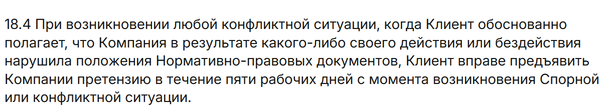 При этом сам процесс разбора споров описан размыто, а риск убытка в результате технической ошибки платформы полностью лежит на клиенте.