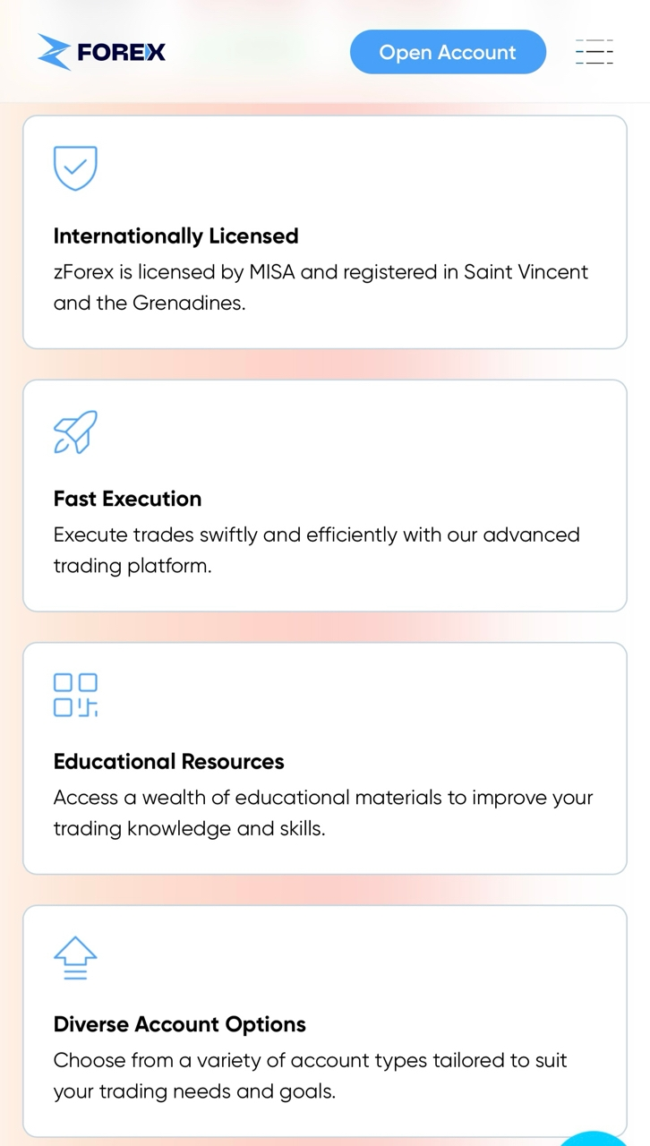 Брокер Z Forex официально зарегистрирован в Сент-Винсенте и Гренадинах. У компании есть документы. Контакты представлены электронной почтой и соцсетями.