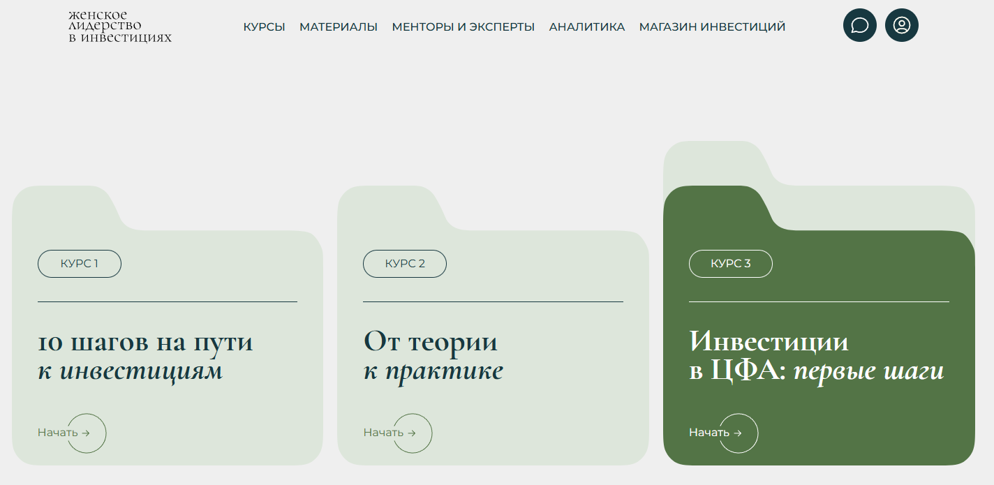 Программа включает три бесплатных курса. Доступ открывается после регистрации на woman invest.