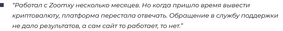 На сайте отсутствовали данные о способах пополнения кошелька, о выводе средств из системы, о возможных комиссиях. Не было ясности, как быстро совершались операции на ZooMxy com, сколько обрабатывались заявки на вывод.