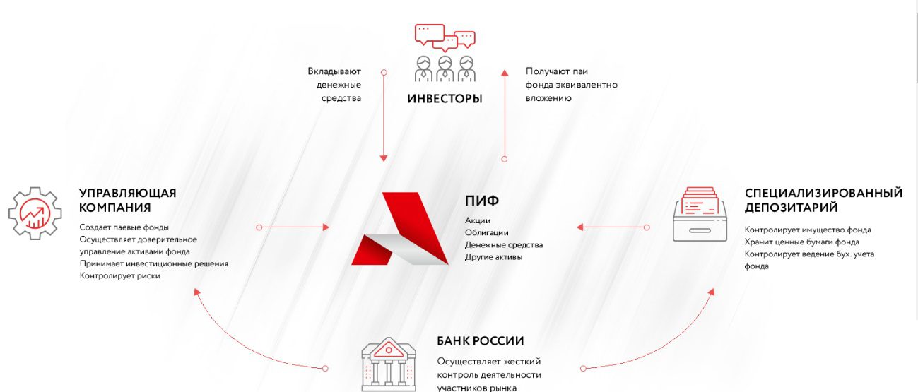Паевой инвестиционный фонд (ПИФ) аккумулирует финансы инвесторов для их последующего вложения в такие финансовые инструменты как акции сырьевых и несырьевых компаний (прогнозируемый годовой доход 71%), облигации (23%), смешанные фонды (35%). Инвесторы покупают паи фонда (или их часть), которые могут продать или обменять, зарабатывая на разнице в цене. ПИФ работает по такому принципу: