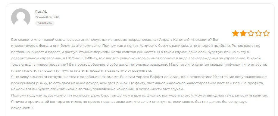 Обзор проекта АО УК Апрель Капитал, отзывы инвесторов