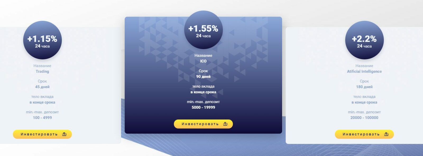 - 20 000 долларов на полгода с доходностью 2,2% ежесуточно.