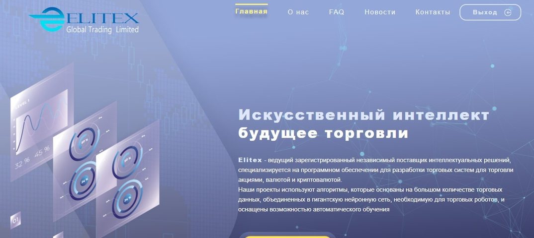 Об Elitex известно, что это инвестиционный фонд, начавший свою работу в 2021 году. В интернете компания предлагает инвестирование в сделки на финансовых рынках с применением автоматических стратегий. Вкладчикам гарантируется доход от 2,2% ежесуточно. Мы внимательно изучили специфику работы проекта. О безопасности и выгодах сотрудничества с компанией мы делимся в нашем очередном обзоре.