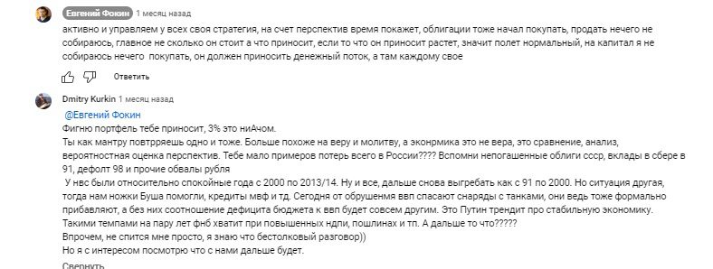 После проведенной проверки деятельности Евгения Фокина, его личных инвестиционных проектов, мы не советуем использовать его рекомендации для долгосрочного инвестирования. Не стоит также платить за индивидуальные консультации, особенно по финансовой грамотности, поскольку Фокин ничем не доказал личную грамотность в этой теме.