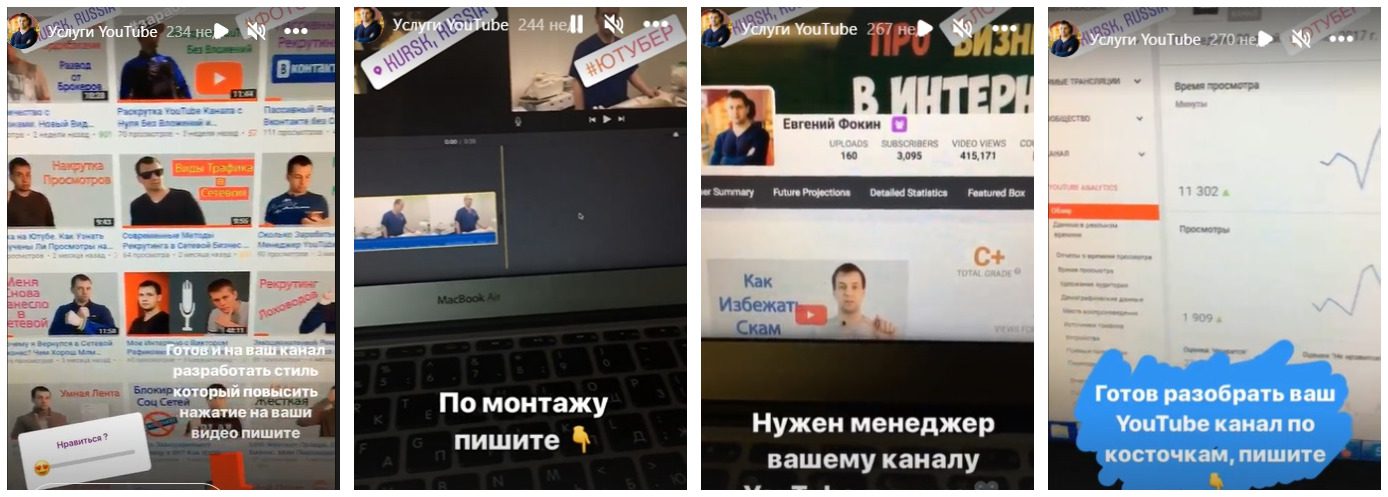 Приобретенный опыт по созданию и продвижению канала Евгений решил тоже монетизировать. Он создал видеокурс на эту тему (цена 668 руб.) и стал предлагать свои услуги другим ютуберам.