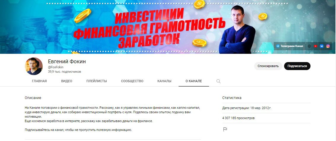 Ютуб-канал Евгения Фокина https://www.youtube.com/@FoxFokin запущен еще 10 лет назад. В 2012 году на нем появились первые ролики о личном опыте работы Евгения в МЛМ структурах, в частности в Орифлейм. Дальше были видео о раскрутке инстаграм, создании каналов на Ютубе, а в последнее время появились ролики на финансовые темы с обзорами разных проектов.