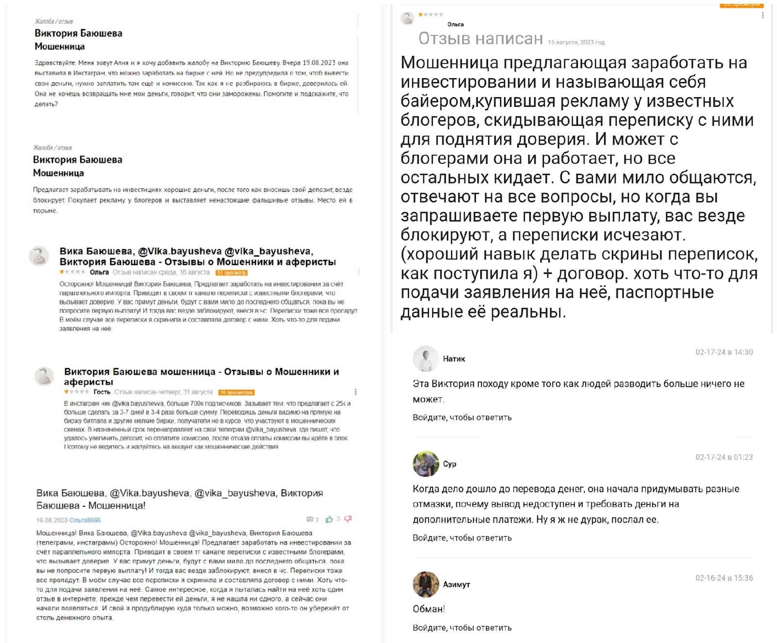 Отзывы о мошеннице vika bayusheva