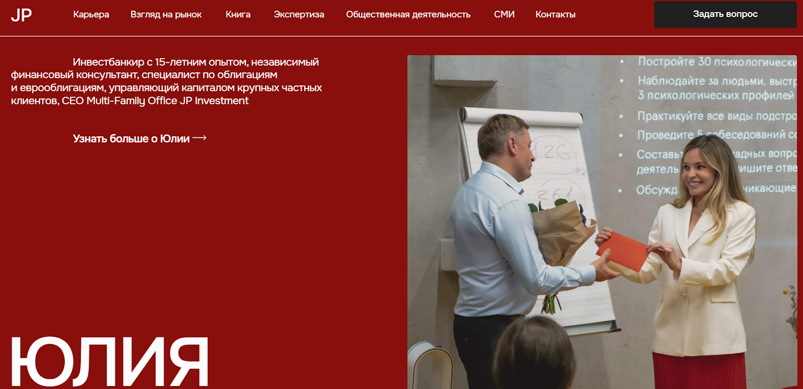 - Юлия Попова имеет долгий путь в финансовой индустрии, поэтому многие люди ей доверяют.