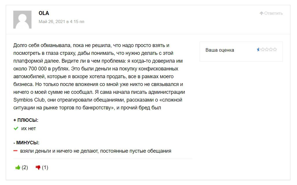 Отзывы о сайте Symbios Club