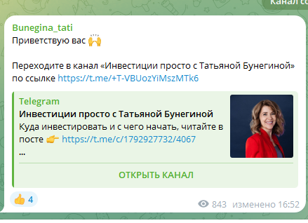Отзывы о Телеграм-канале Тетьяны Бунегиной, оценка проекта Инвестиции просто, скам или нет