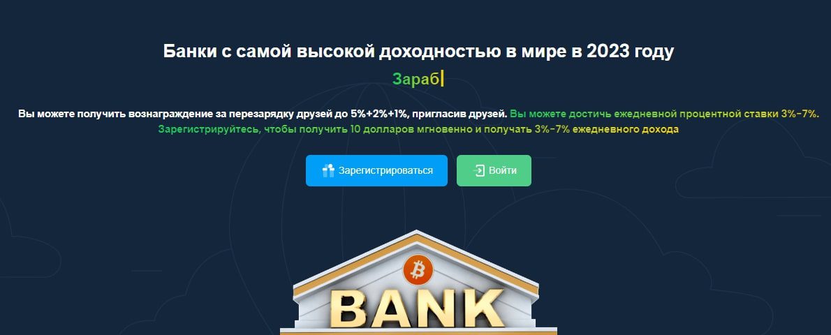 Условия заработка в проекте Bitcoin Bank