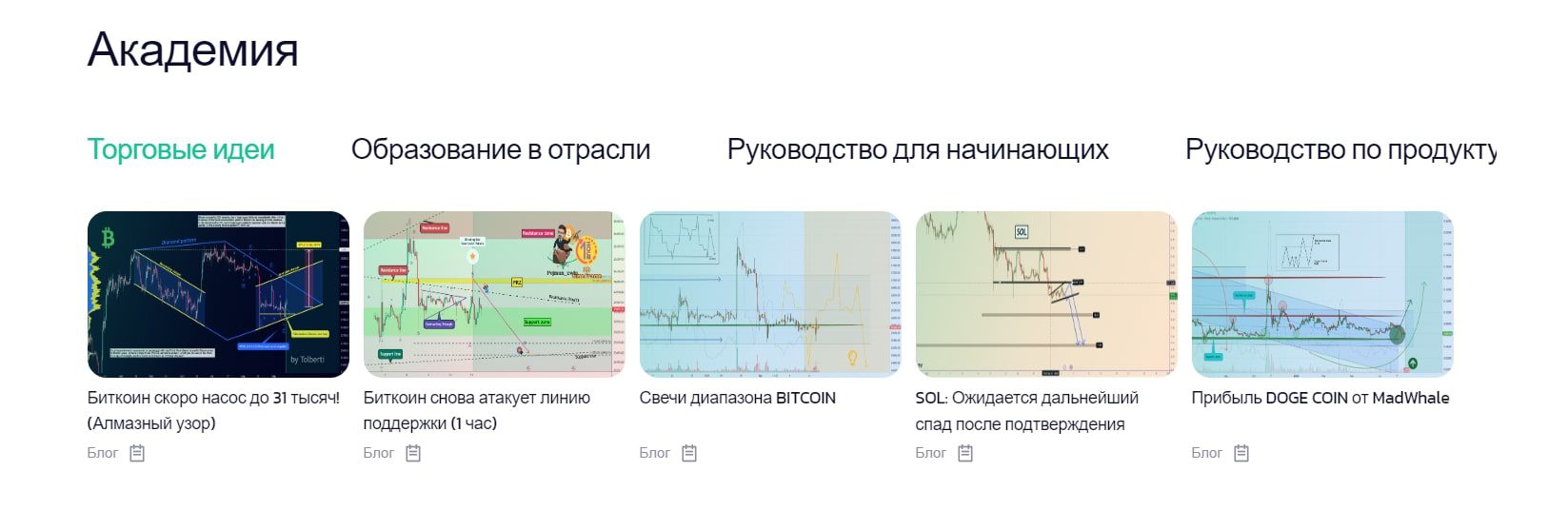 На официальном сайте биржи Bitforex представлен раздел с торговыми идеями, обучающими материалами, руководством для новичков — это Академия. Есть возможность конвертировать токены прямо на платформе, чтобы не пользоваться сторонними обменниками.