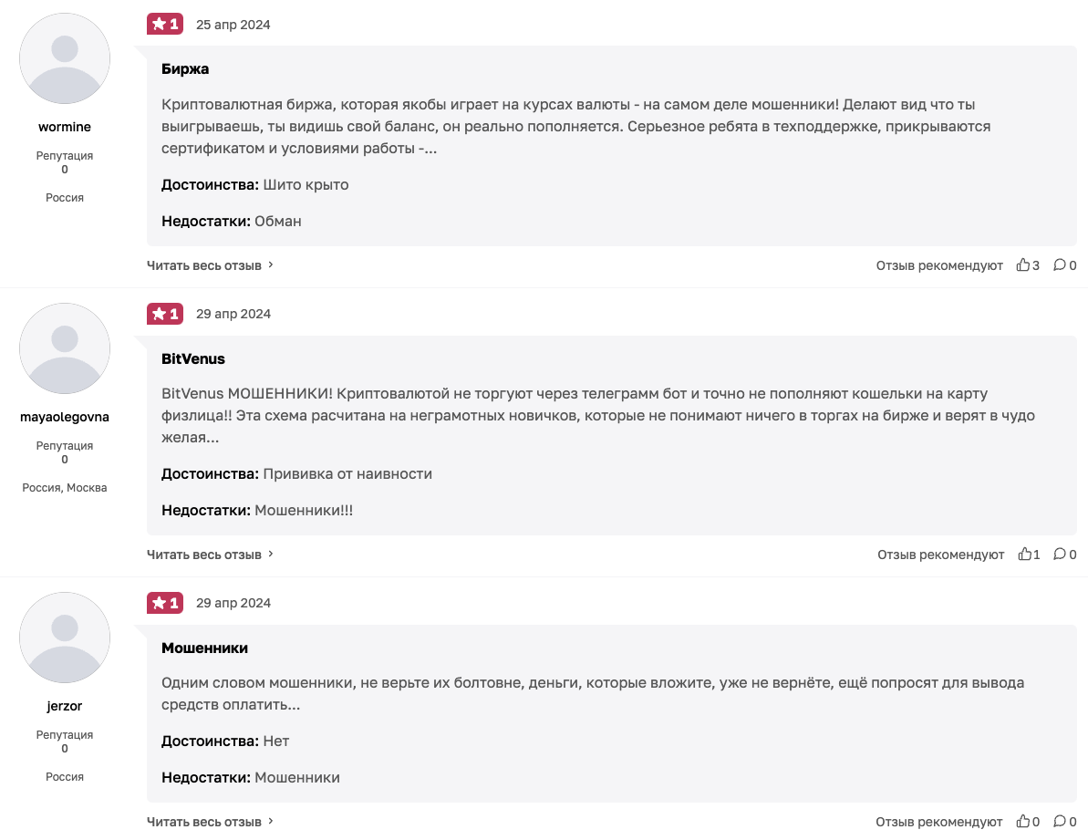 - в некоторых отзывах люди выражают недовольство не какими-то ботами, а конкретно площадкой BitVenus;