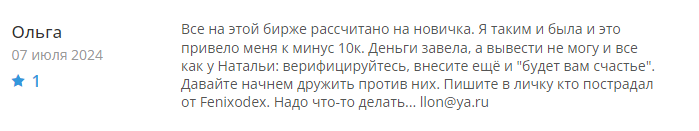 Во время проведения нашей проверки мы обнаружили много негативных отзывов о криптовалютной бирже Фениксодекс. Пользователи пишут, что потеряли крупные суммы, поверив в обещания создателей лохотрона. Например, одна клиентка платформы лишились 10 000 рублей. Есть также разоблачения от аналитиков, которые детально перечисляют все минусы этого проекта.
