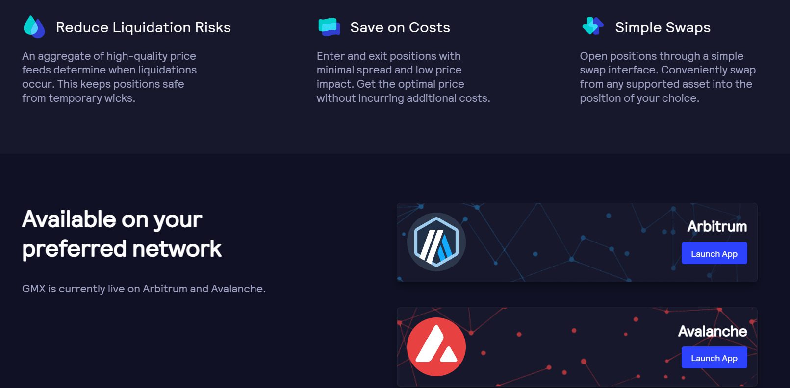 Платформа GMX.io была создана анонимными программистами, предположительно находящимися в Сиднее, Австралия. GMX считается крупнейшим представителем DeFi, с общим объемом сделок около 50 млрд долларов и ежедневной открытой позицией, превышающей 80 млн долларов. Торговая платформа GMX предоставляет доступ к различным криптовалютам в зависимости от выбранной сети. На текущий момент для сети Avalanche платформа GMX позволяет использовать кредитное плечо до 1:30 для AVAX, ETH, USDT, BTC и бриджированного BTC (BTC.b). В Arbitrum пользователи могут торговать ETH, BTC, USDC, USDT, FRAX, DAI, LINK и UNI и пр., кредитное плечо не выше 1:30. Разработчики заявили, что продолжат добавлять новые токены в обе сети по мере развития продукта и его адаптации к требованиям рынка. Команда GMX хранит полную анонимность, это негативный фактор. Тем не менее протокол привлек более 375 миллионов долларов общей стоимости, что говорит о доверии к нему со стороны состоятельных и институциональных инвесторов. Платформа также проходила тщательный аудит от ABDK Consulting. Полный текст аудита доступен в репозитории GMX на Github.