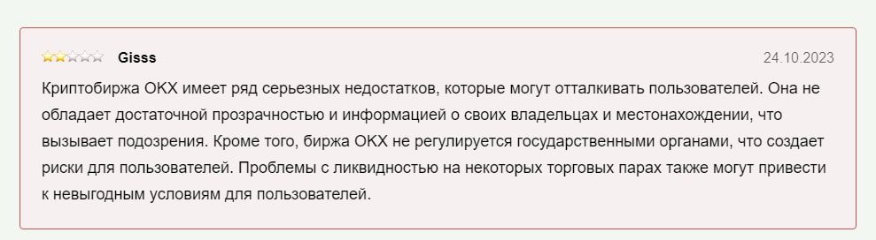 В интернете об этой платформе много отзывов, и они разнятся. Некоторые пользователи высоко оценивают OKX за удобный интерфейс и хороший торговый опыт. С другой стороны, есть пользователи, которые разочарованы в OKX. К примеру, инвесторов не устраивает отсутствие мобильной версии и дополнительных инструментов для работы на платформе.