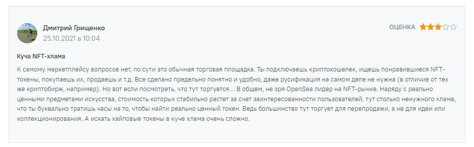 На сторонних сайтах можно найти отрицательные отзывы, OpenSea критикуют реальные инвесторы, которые пострадали от работы на платформе. Многие обращают внимание на то, что понесли финансовые убытки и не смогли вернуть средства, которые были внесены в качестве депозита.