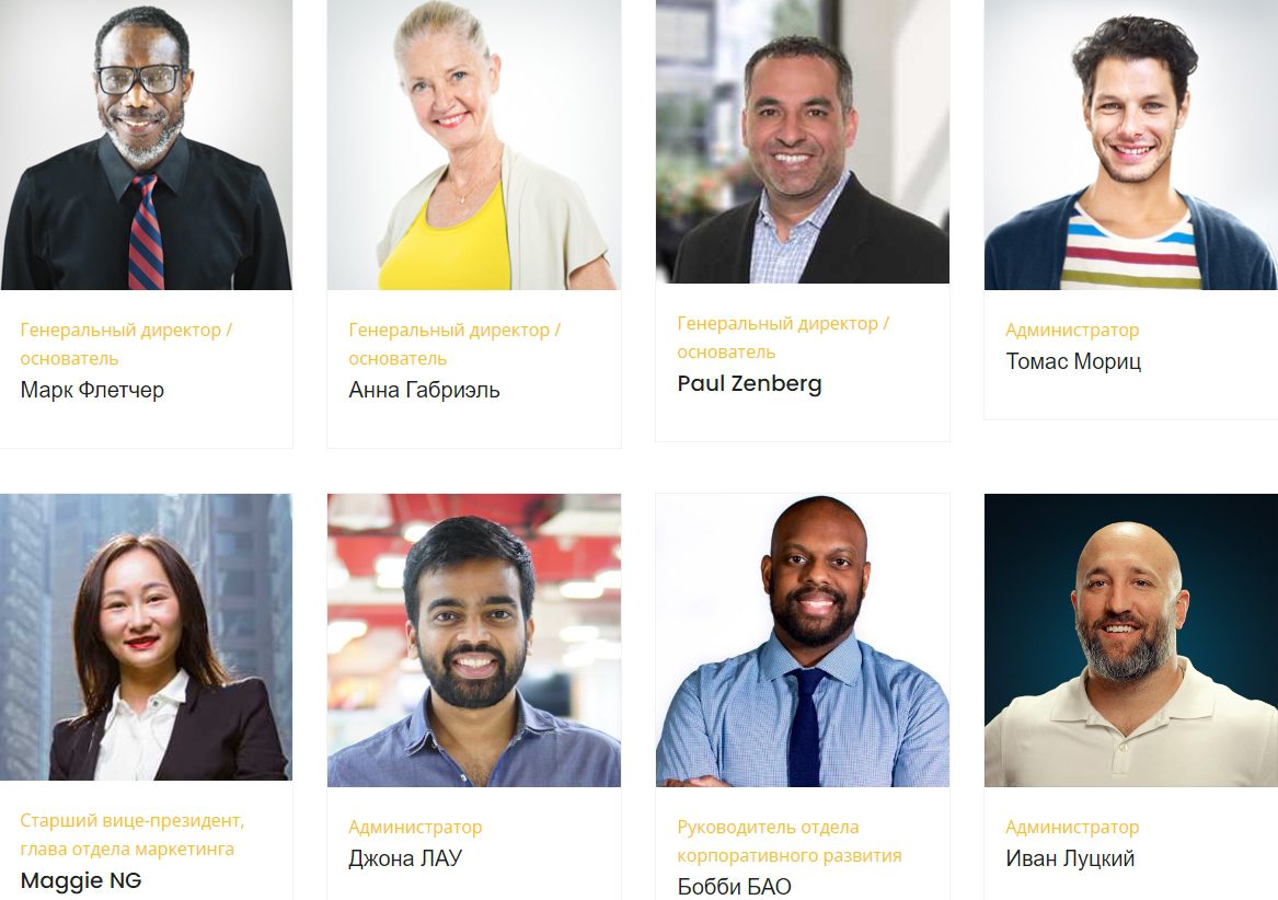 Среди них восемь человек, гордо именуемых «основателями» и «вице-президентами», однако подтвердить их существование с помощью поисковиков не удалось. Вероятно, Иван Сенчаков попросту взял фото случайных людей и дополнил их пафосными подписями, после чего выдал мошенническое творение за правду.