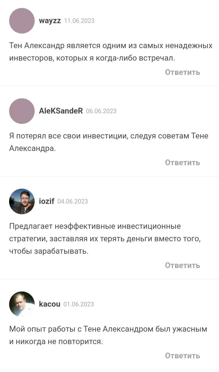 Нам удалось отыскать реальные комментарии, и они сильно отличаются от тех, которые преподносит автор. Пользователи уверяют, что стратегия Александра лишь помогает потерять капитал, а не увеличить его. Его методика, по мнению людей, неэффективная.