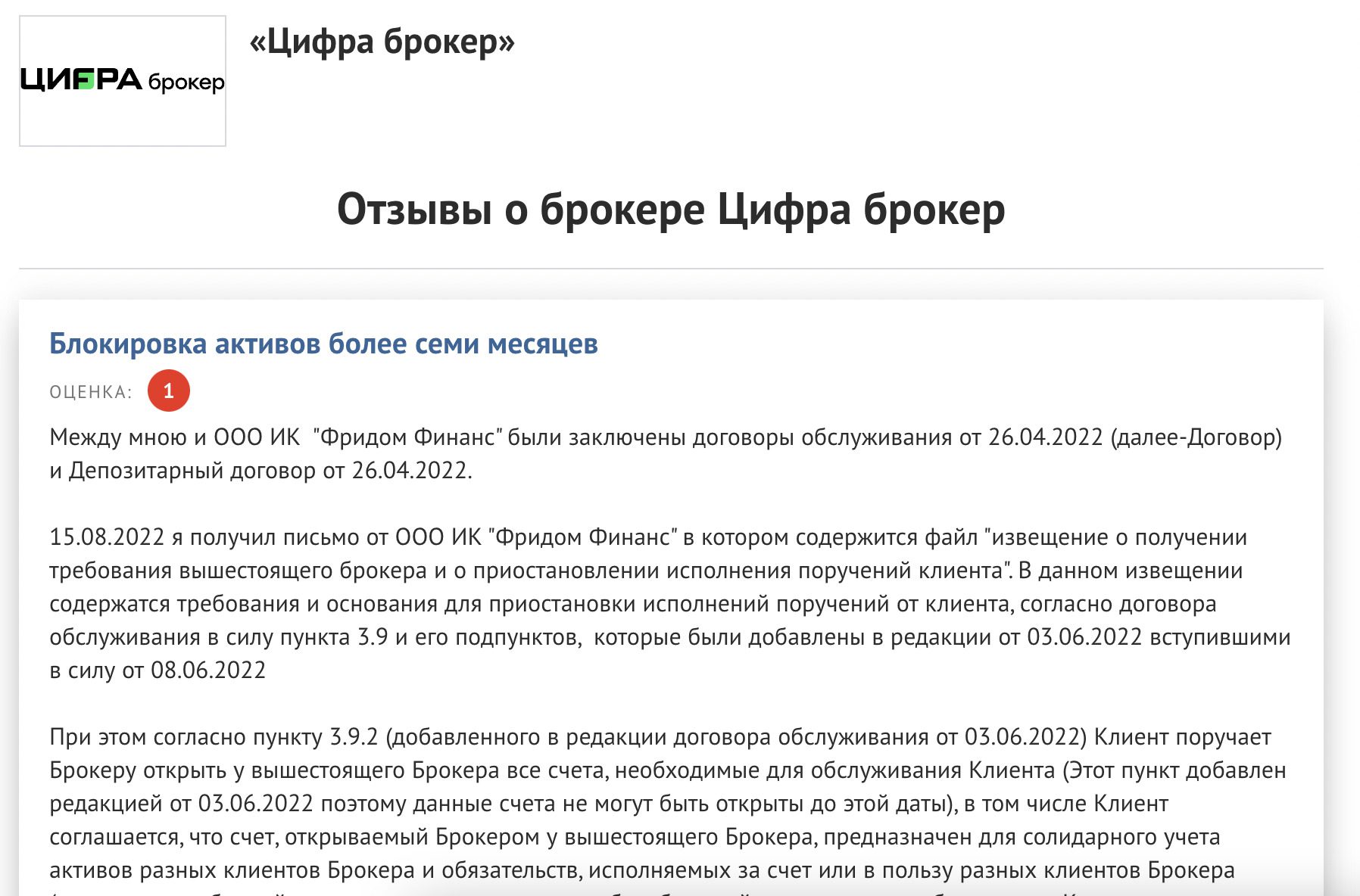 Андрей Черных является представителем брокера «Цифра брокер». Однако рейтинг брокера на сайте Банки.ру низок, что может вызывать опасения у потенциальных клиентов трейдера.