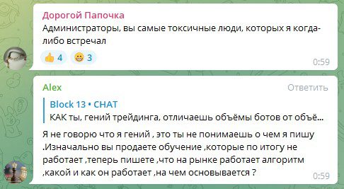 Изучая комментарии реальных пользователей под постами автора проекта, можно найти массу негатива в адрес создателя. Люди пишут о некомпетенции псевдотрейдера в сфере трейдинга, о том, что администратор группы грубит подписчикам.