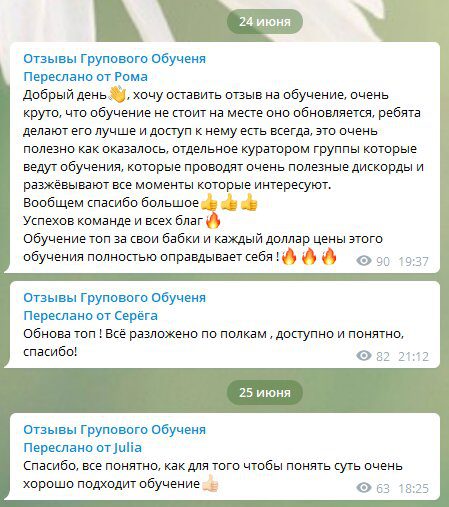 У Григория есть отдельный Telegram канал, на котором выкладываются только положительные отзывы о его курсах с фотографиями графиков и заработка. Однако вы не найдете там ни одного плохого, что уже свидетельствует о покупке комментариев для большего доверия со стороны пользователей.