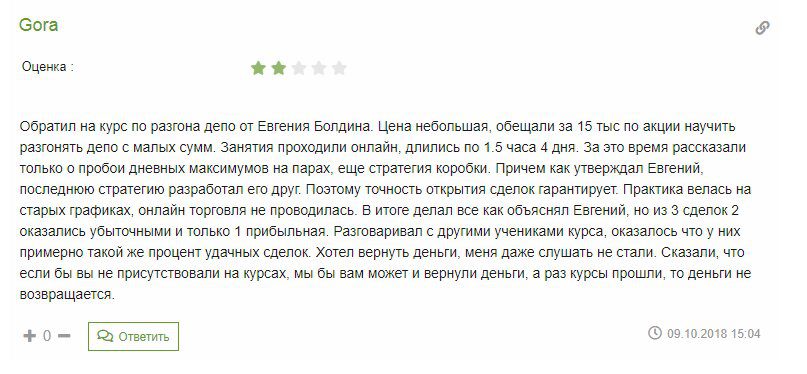 Реальные отзывы о трейдере Евгении Болдине