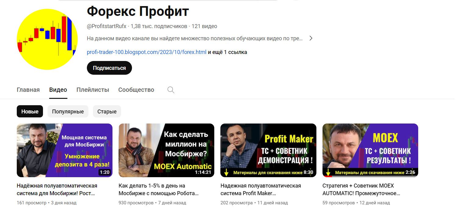Ютуб канал Форекс Профит, отзывы, обзор работы