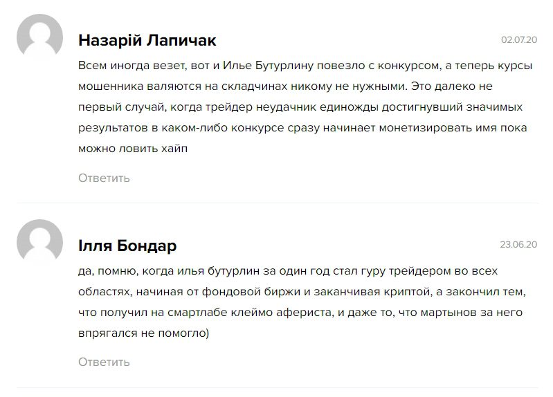 По итогам анализа программы автора не было найдено много положительных отзывов на сторонних сайтах. В основном они сосредоточены на собственных ресурсах спекулянта. По неподтвержденным слухам, Бутурлин Илья Владимирович просит студентов Финансового университета писать позитивные комментарии. Хотя слухи остаются слухами.