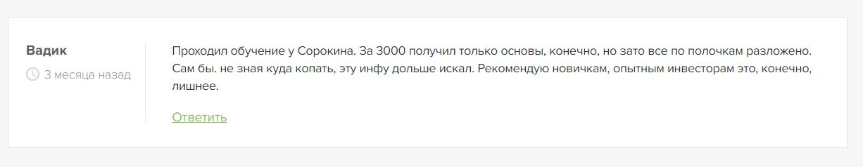 Реальные отзывы об инвесторе Константине Сорокине