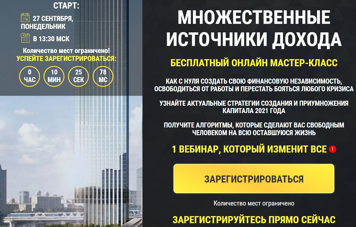 - Вебинар «Множественные источники дохода»;