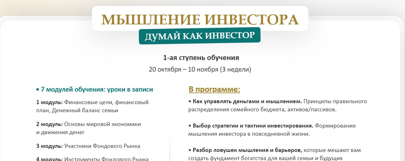 - “Мышление инвестора” — 7 модулей;