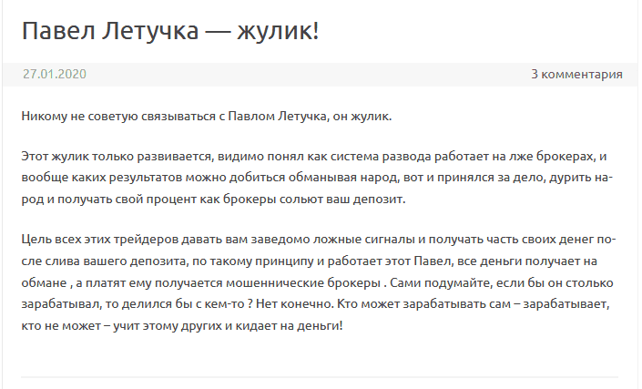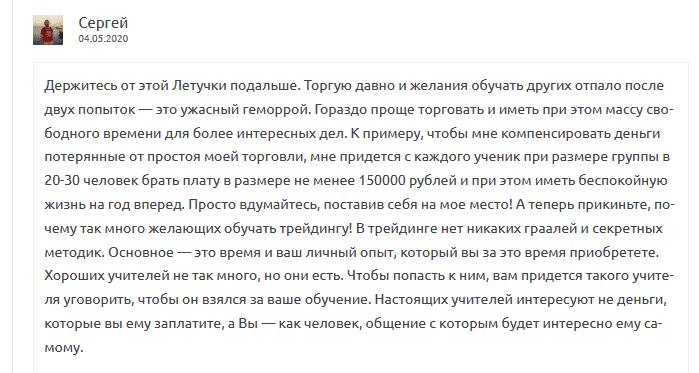 Отзывы об обучении Павла Летучки говорят о том, что создатель украл информацию в другого наставника и даже не сменил фразы: