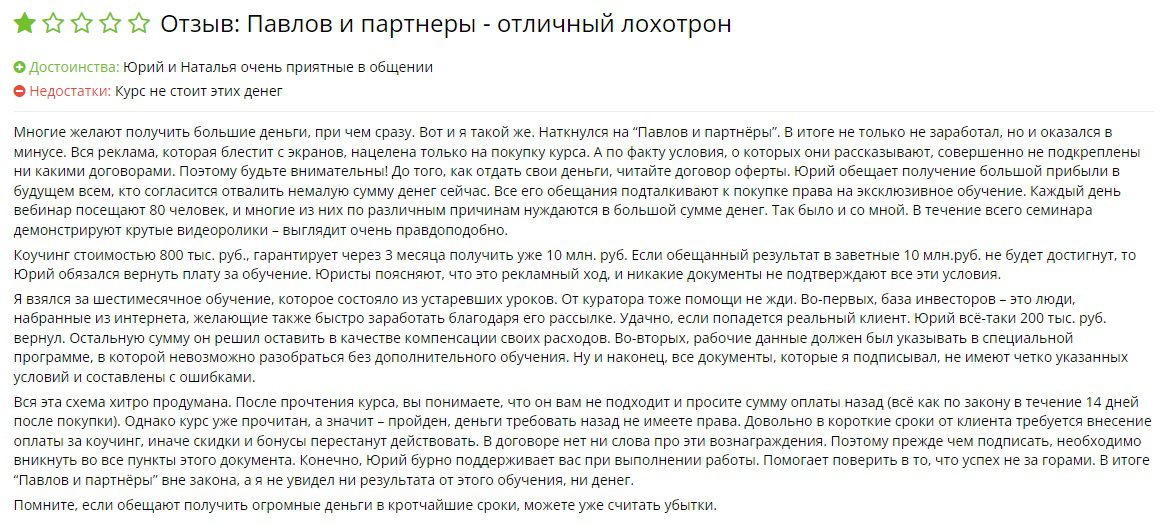 Обзор Павловы и партнеры: обман или нет