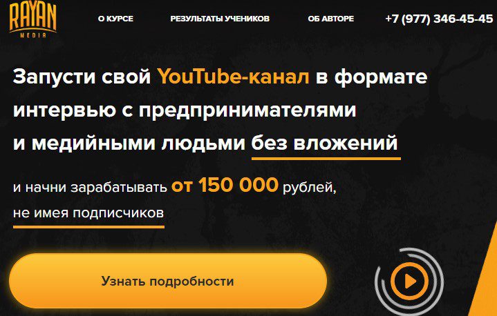 У Райана канала на Ютуб нет, что выглядит странно при таком курсе. У одной из его компаний есть небольшой канал, видео на котором набирают минимум просмотров. Он точно не замечен в какой-либо успешной деятельности на создании видео. Но это не мешает ему обучать за деньги заработкам на этой сфере.