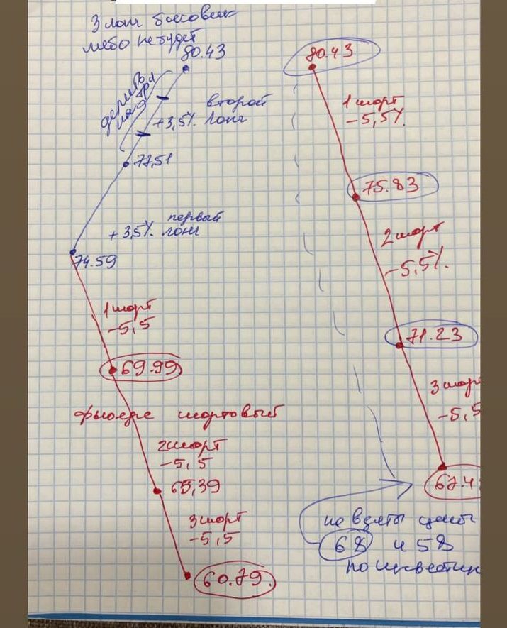 Кроме таких постов, в сторис очень много отзывов от благодарных учеников, а также скрины работы на биржах. Особенностью отчетов является то, что все они обрезаны таким образом, чтобы не было видно даты операции и ника владельца. На них просто наложен текст автора. Верифицированной статистики или подтвержденной доходности инвестиционного портфеля Reile не предоставляет. Особого внимания заслуживают личные анализы автора проекта, которые она неизменно делает в клетчатой тетради. Видимо работу с графическими редакторами ей не удалось освоить.