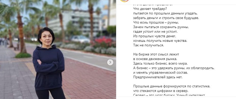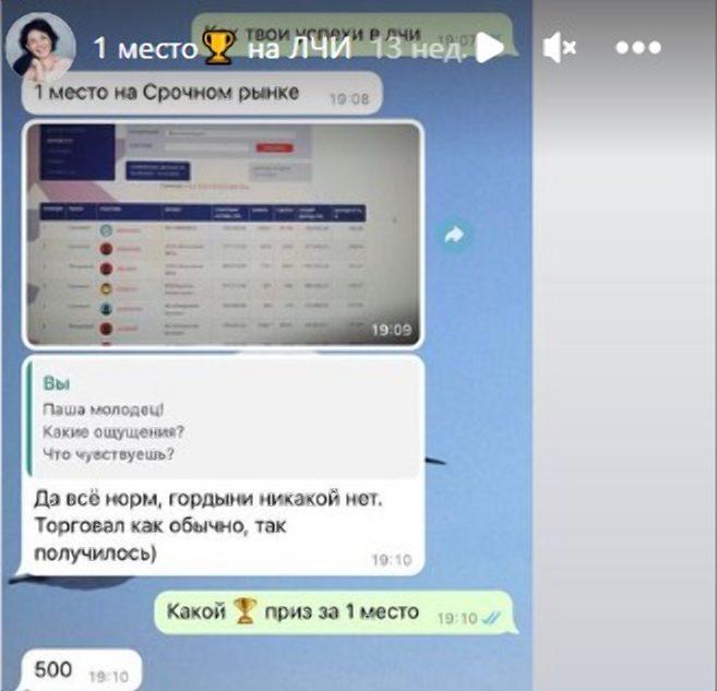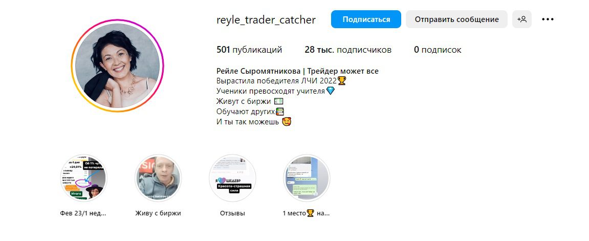 На личных ресурсах отзывы с благодарностями Reile размещает систематически. Она даже уверяет, что победитель конкурса Мосбиржи “Лучший частный инвестор 2022” в номинации срочных рынков deprivator является ее учеником.
