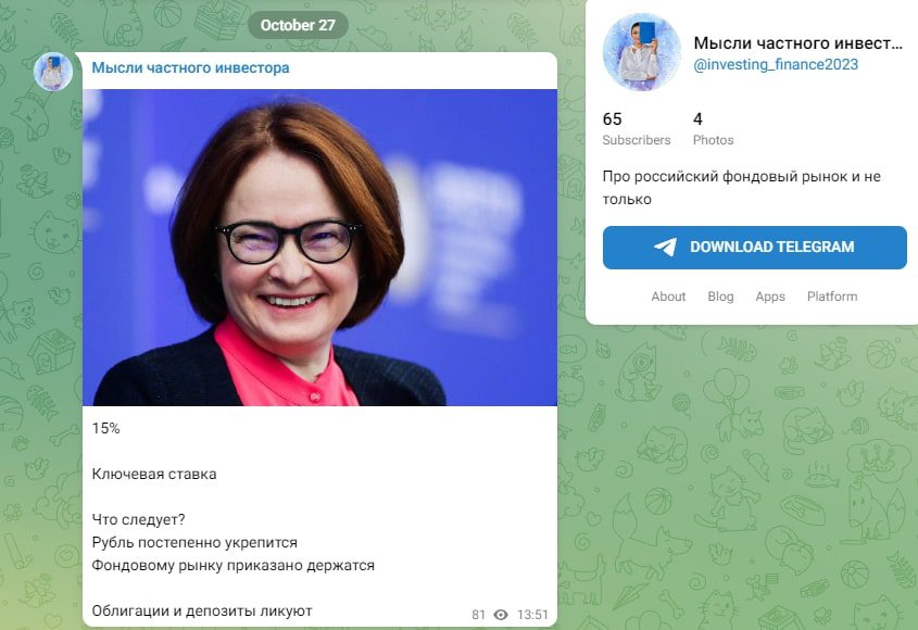 Мошенница утверждает, что она независимый инвестиционный эксперт и инициатор образовательного ресурса в Телеграм, запущенного 9 октября 2023 года. Ее активность также простирается до Instagram, где у нее зарегистрировано более 19,4 тысячи подписчиков, чья активность вызывает подозрения в подлинности. Она предлагает индивидуальное инвестирование, консультативные услуги и групповую торговлю на бирже.