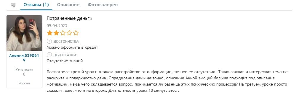 Пользователи отмечают низкое качество обучения, не соответствующее заявленным ожиданиям участников. В результате участники курсов и тренингов остаются разочарованными полученными услугами, так как новых знаний они не получают.