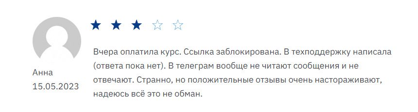 Некоторые клиенты выражают свое недовольство, утверждая, что они получили полностью бесполезный материал за свои деньги, особенно если они заплатили полную стоимость. Этот материал не предоставляет новых знаний или полезной информации. Попытки вернуть деньги оказываются безуспешными, поскольку консультанты на сайте, где была сделана покупка, перестают поддерживать связь и общение с клиентами.
