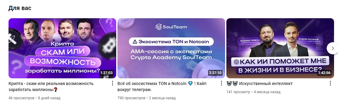 Помимо официального сайта, у Soulteam есть канал в Ютубе, а также лента в Телеграме. Вопросы пользователи могут обсудить через SoulTeam Support bot. В Телеграм-канале публикуются новости академии, в Ютубе soulteam есть краткие обзоры перспективных криптовалют, а также сведения об использовании в трейдинге искусственного интеллекта. Но аудитория у Академии не активная, в Ютубе – 800 подписчиков, в Телеграме – 3200 человек.