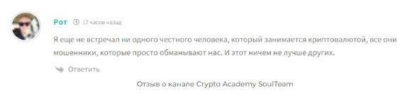 Отзывы о Телеграм-канале Crypto Academy SoulTeam, оценка проекта Соултим, скам или нет