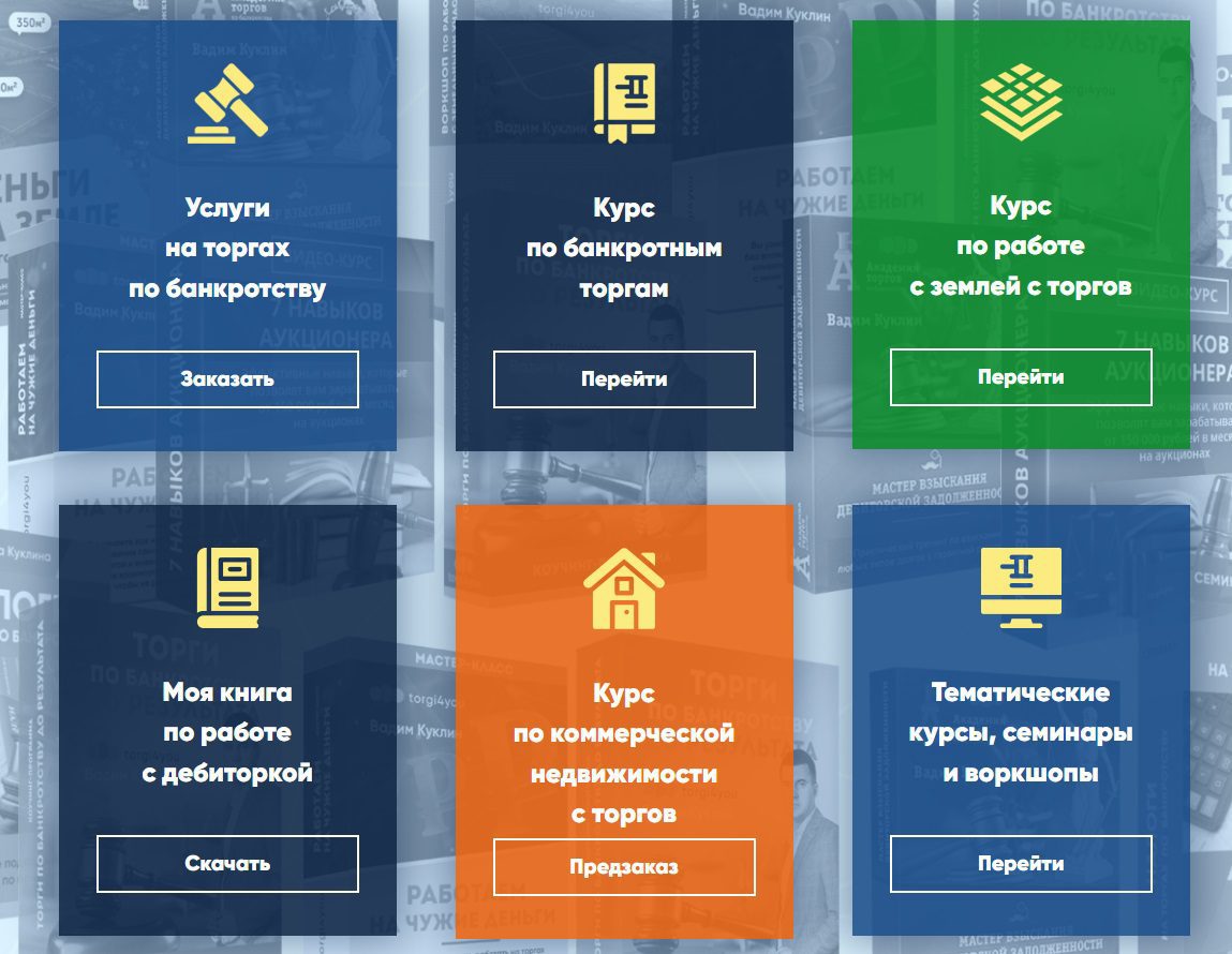 Кроме этого, клиентам предлагаются услуги на торгах по банкротству. Однако ссылка на оформление заказа на момент написания обзора оказалась нерабочей. Это же касается и тематических курсов и семинаров. Либо проект находится еще на стадии разработки, либо мошеннику не важно, что ресурс недоработан.