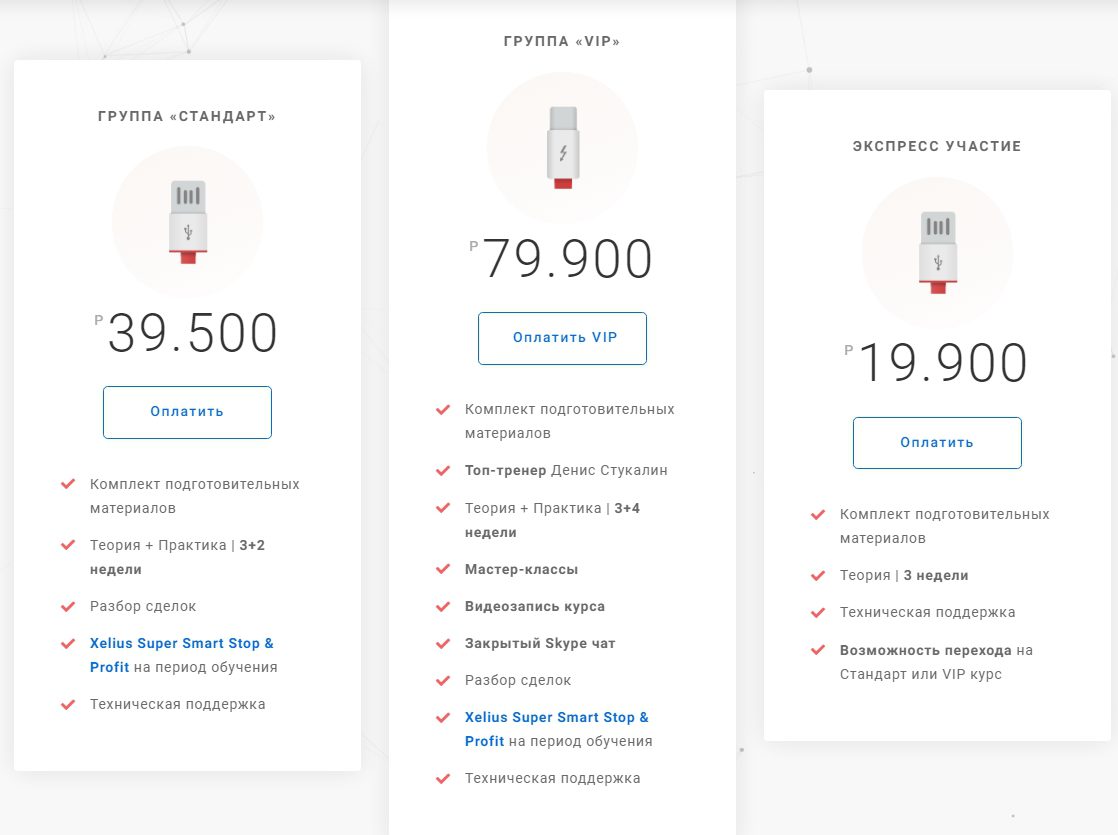 - Курс “Трейдинг на миллион” — экспресс участие за 19 900(теория и три недели обучения), стандарт за 39 500 (три недели практики и теорий), с доступом к мастер-классам и сопровождение Дениса Стукалина за 79 900 рублей;