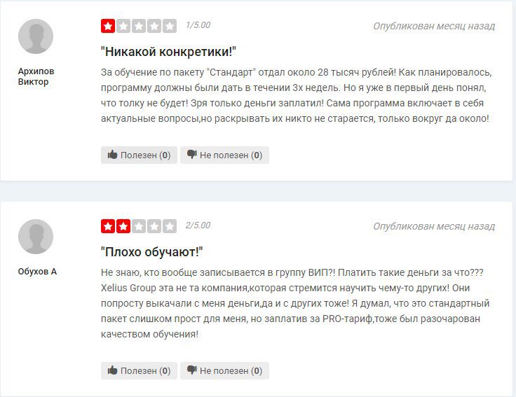 Положительные отзывы о деятельности компании Xelius Group есть исключительно на их сайте. Верифицировать их подлинность невозможно. На сторонних ресурсах пользователи оставляют негативные комментарии. Жалуются на бесполезность программ-помощников, также на неоправданную стоимость курсов, которую можно найти в бесплатном доступе.