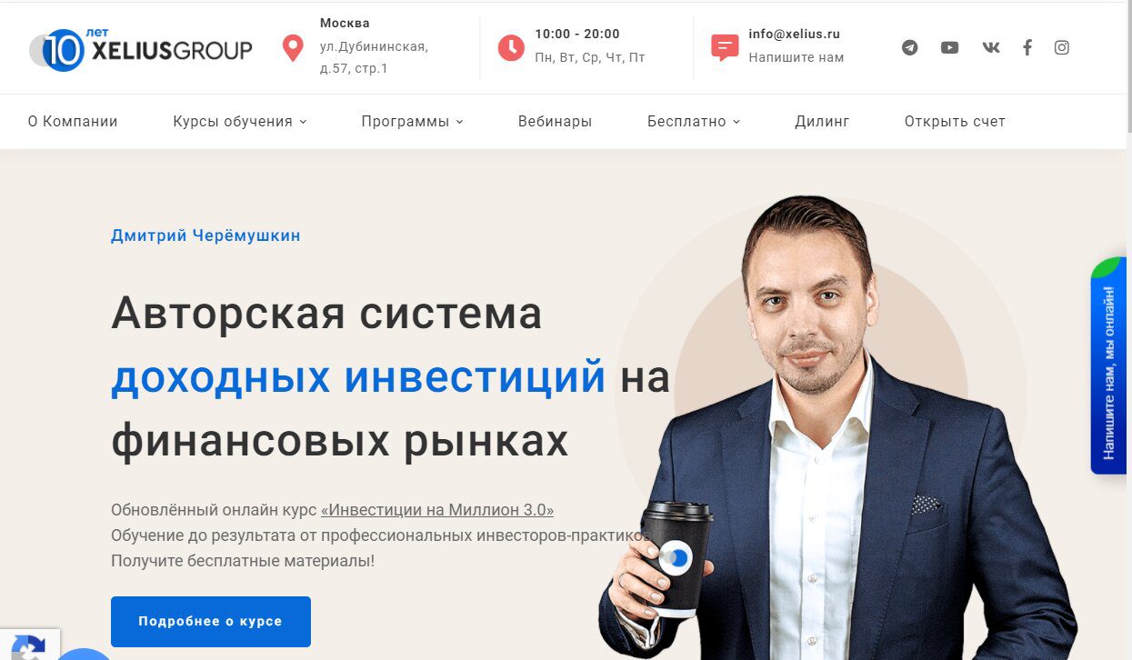 Xelius Group — компания, продающая образовательные курсы по трейдингу на финансовом и фондовом рынке. Имеется более 10 уникальных обучающих ресурсов. Все обучение проходит в офисе компании или на платформе сайта. По их словам — из новичков готовят успешных трейдеров и инвесторов. Можно ли им доверять и приобретать их курсы, мы расскажем в сегодняшней статье.