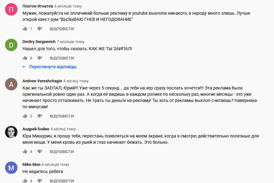 Отзывы на последнем видео говорят, что создатель купил рекламу на Ютубе. Все отзывы против такой рекламы, говорят, что видео неполезные, надоедают.